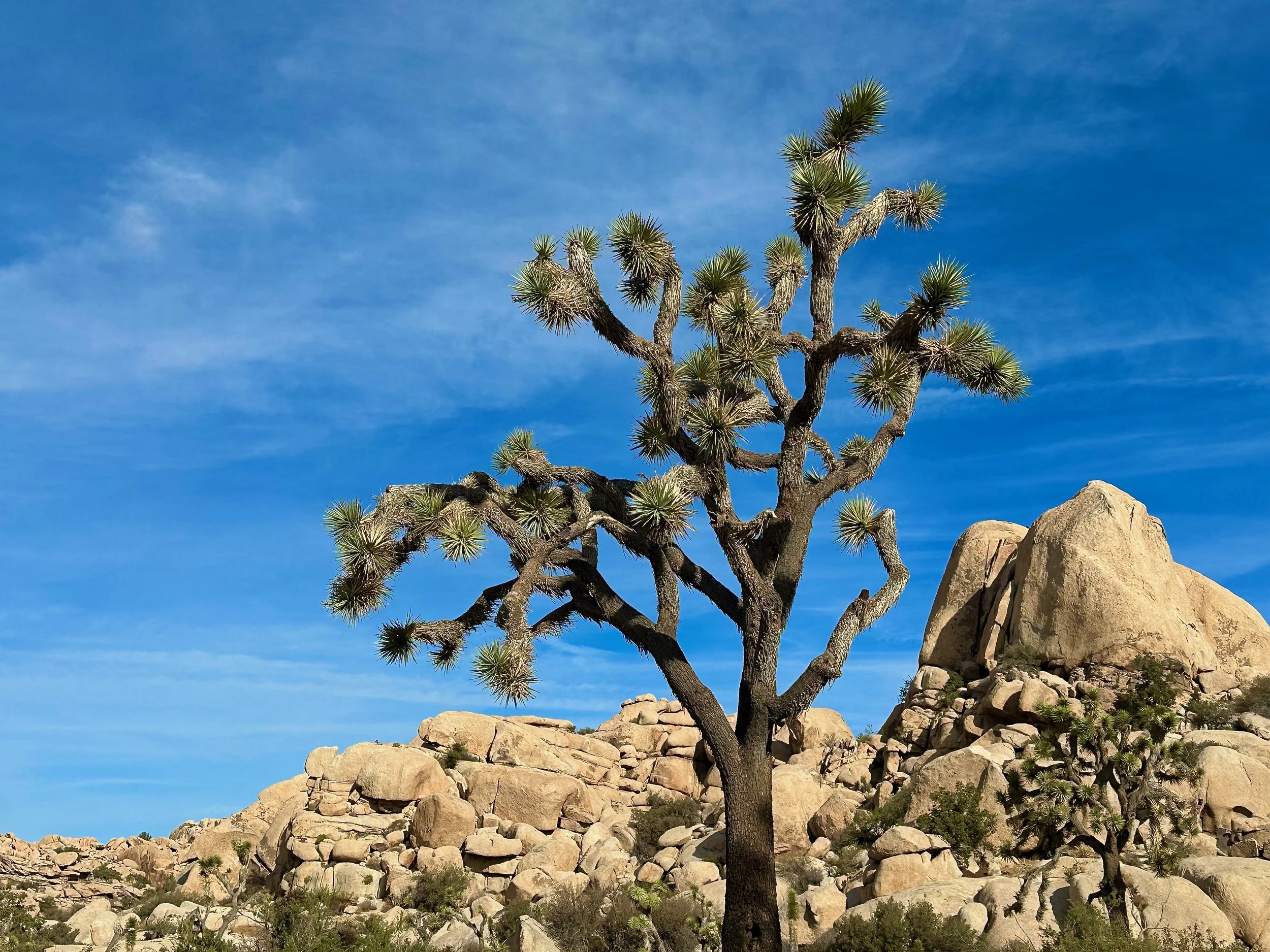 It’s a long process, to grow roots and arms. It’s part of a much longer process still, for our ancient precious planet. I’m humbly reminded of this by looking at the weathered landscape that hosts the Joshua trees. It’s taken tens of millions of years for the stone to erode into the beauty of the sculpted granite we see now. The stone is as expressive and alive as the Joshua trees themselves.